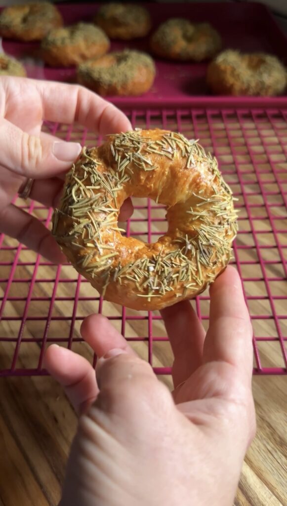 Either way, be sure to let the cooked bagels cool for at least 15 minutes before slicing. This allows the insides to finish cooking and ensures you don’t slice into a doughy bagel.