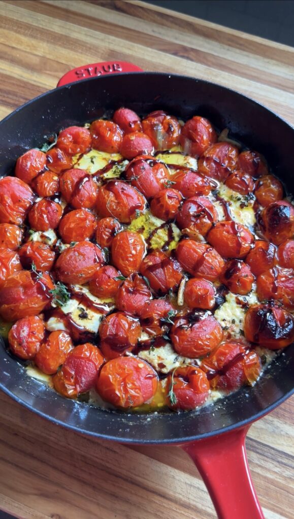 burst cherry tomato and goat cheese skillet